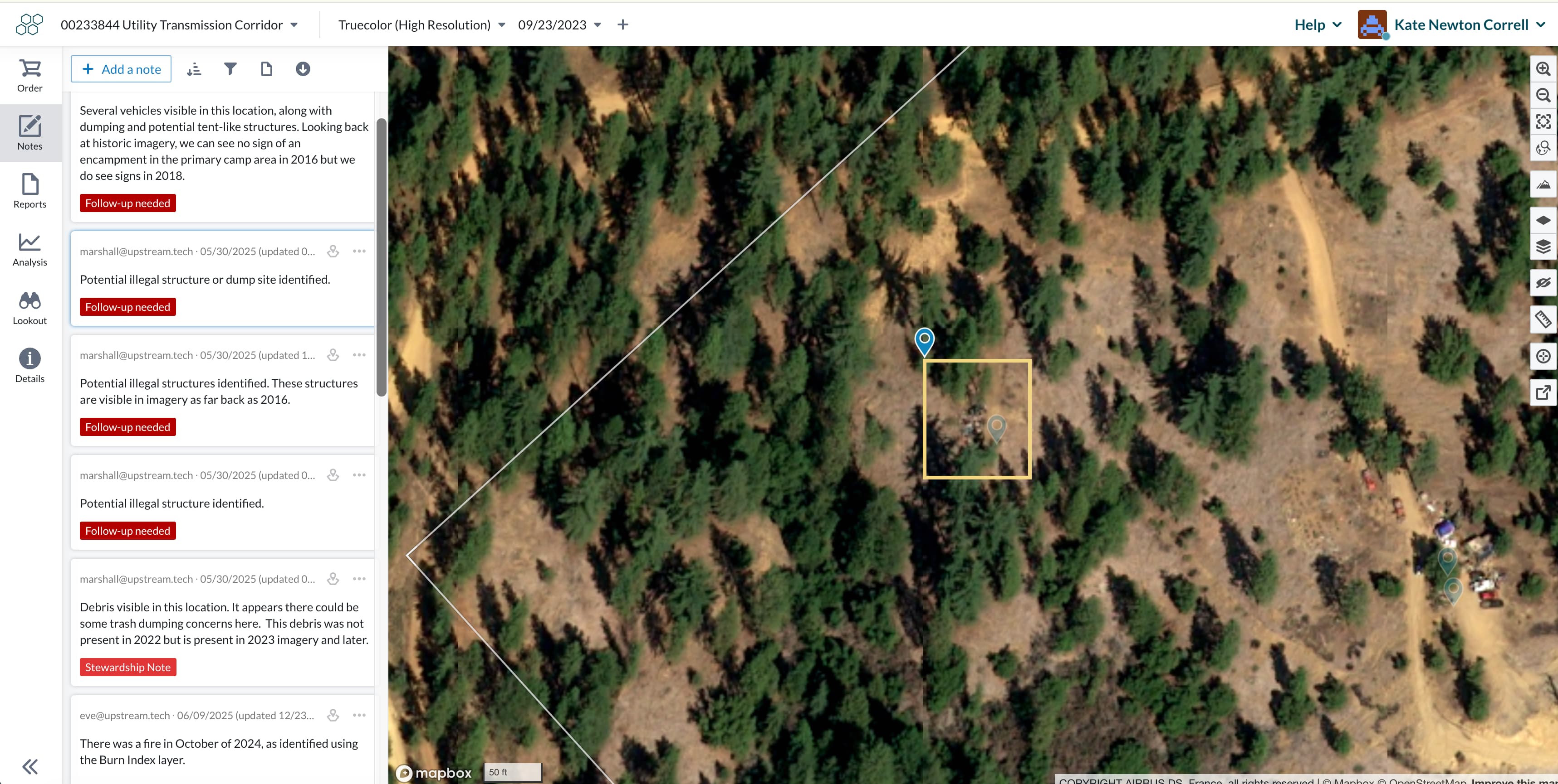 Streamline your monitoring with powerful AI tools. Our Lens agent does your monitoring work for you, highlighting the most important changes across your portfolio — like trespass or unexpected disturbance — and makes reviewing changes faster than ever. We configure Lens to your organization’s monitoring needs, helping you scale your capacity without sacrificing oversight.