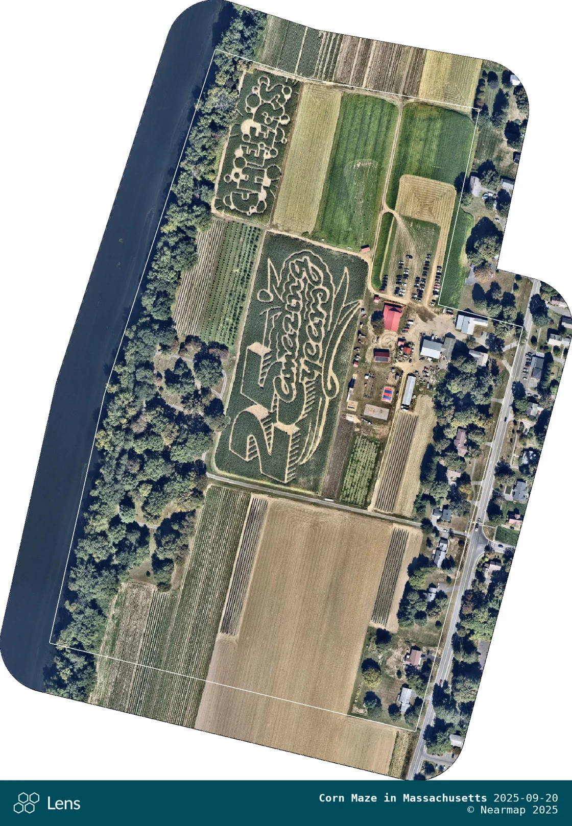 Fall festivities have arrived in full force in New England. The image below shows a corn maze in Massachusetts with lettering that spells "25 amazing years" and "cheers".