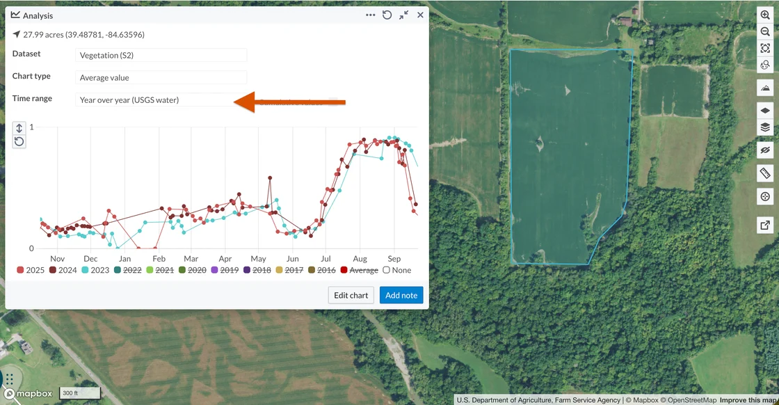 The Analysis tool in Lens can provide deeper insights into trends in the areas you monitor over your selected time range. As we kick of the new USGS water year running from October 1 - September 30, now is a great time to use Lens for Year over year USGS water year data.